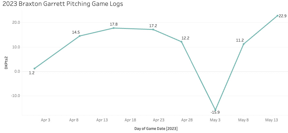 8. Braxton Garrett (vs. CIN): 22.85 Points
