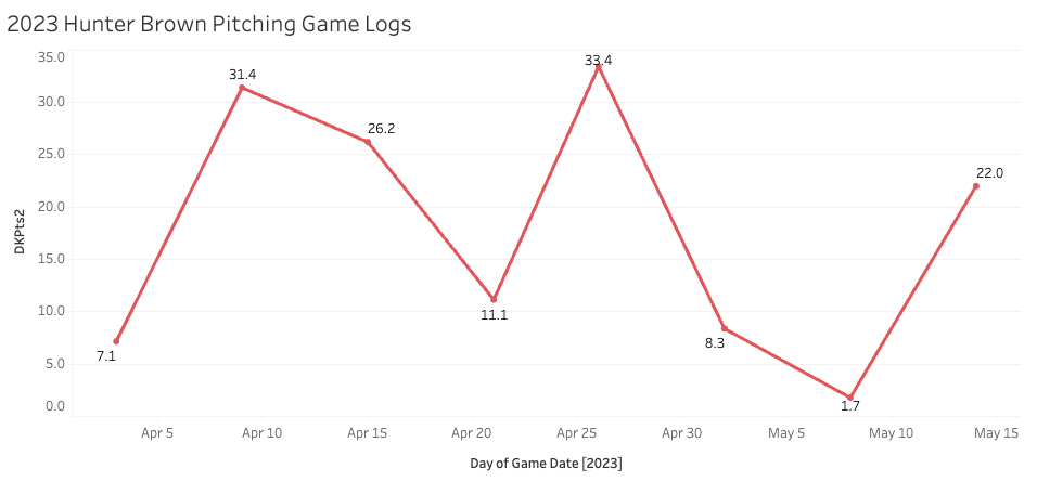 10. Hunter Brown (vs. CWS): 21.96 Points