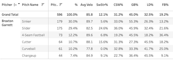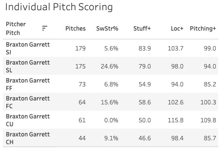1. Braxton Garrett (MIA): 17.1 SwStr%, 42.7 CSW%
