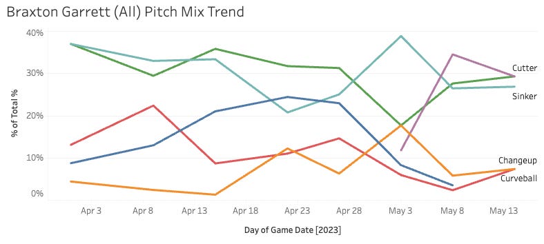 Braxton Garrett is underrated. He is available in plenty of leagues and that one absolute disaster start against the Braves where he was just hung out to dry has a lot to do with that, I suspect: