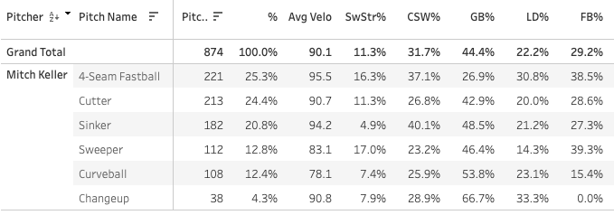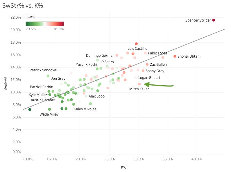 2. Mitch Keller (PIT): 12.9 SwStr%, 41.9 CSW%