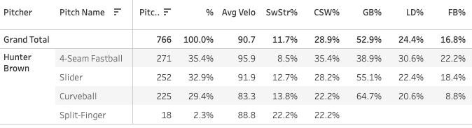 Hunter Brown led the day in whiffs with 19. It’s been a bit of a bumpy ride for him this year: