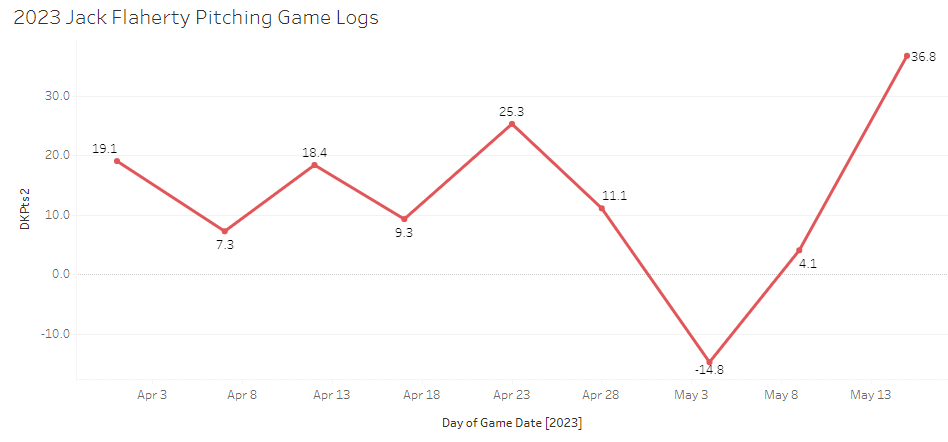 2. Jack Flaherty (vs. MIL): 36.75 Points