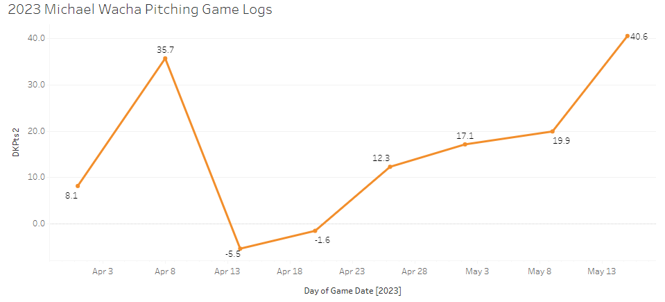 We’re also seeing Kyle Bradish in the top ten of the JA ranking algorithm and in the hot pitcher tracker. He has a 20.9% K% and an 8.7% BB% for the season, which sucks, but over the last three outings he has a 15% SwStr%, a 23% K%, and a 6% BB%. He has 15 and 16 whiffs in his last two starts against the Braves and Pirates, and has kept the walks to just one or two in five of his six starts - so he might end up with a pretty good season after all.
