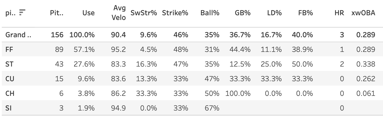 → 9.6% SwStr%, 35% Ball%