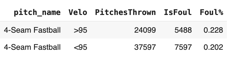 So it seems to matter a bit. Four-seamers above 95mph get fouled off more than ones under 95.