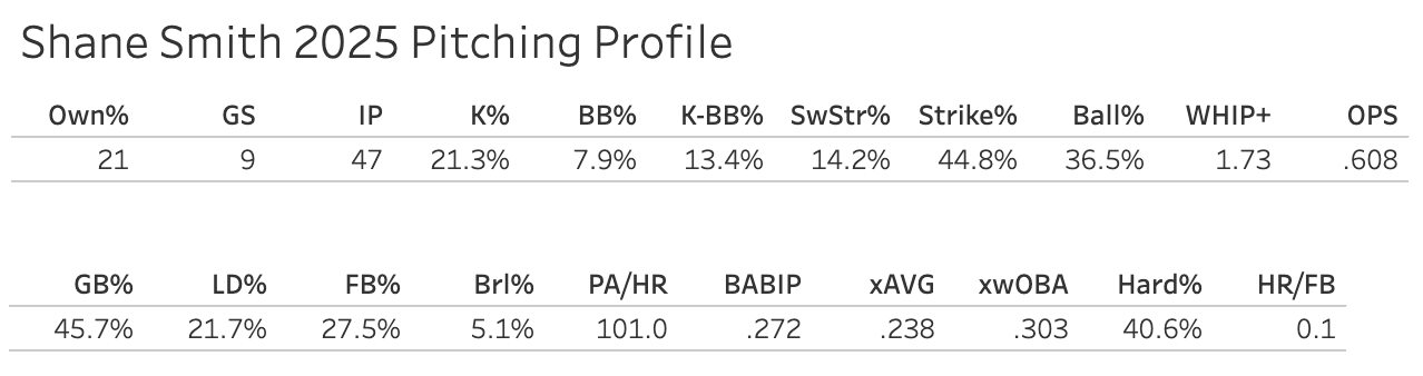 Shane Smith update after his decent start against the Cubs: