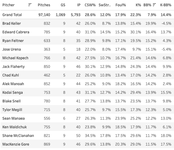 1. Edward Cabrera (MIA): 22.8 SwStr%, 35.4 CSW%