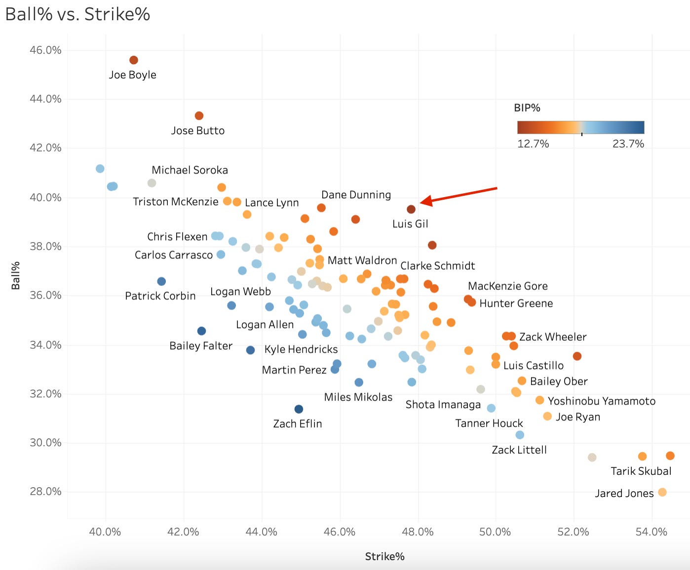 1. Luis Gil (NYY): 57.1 Strike%, 33.7 Ball%