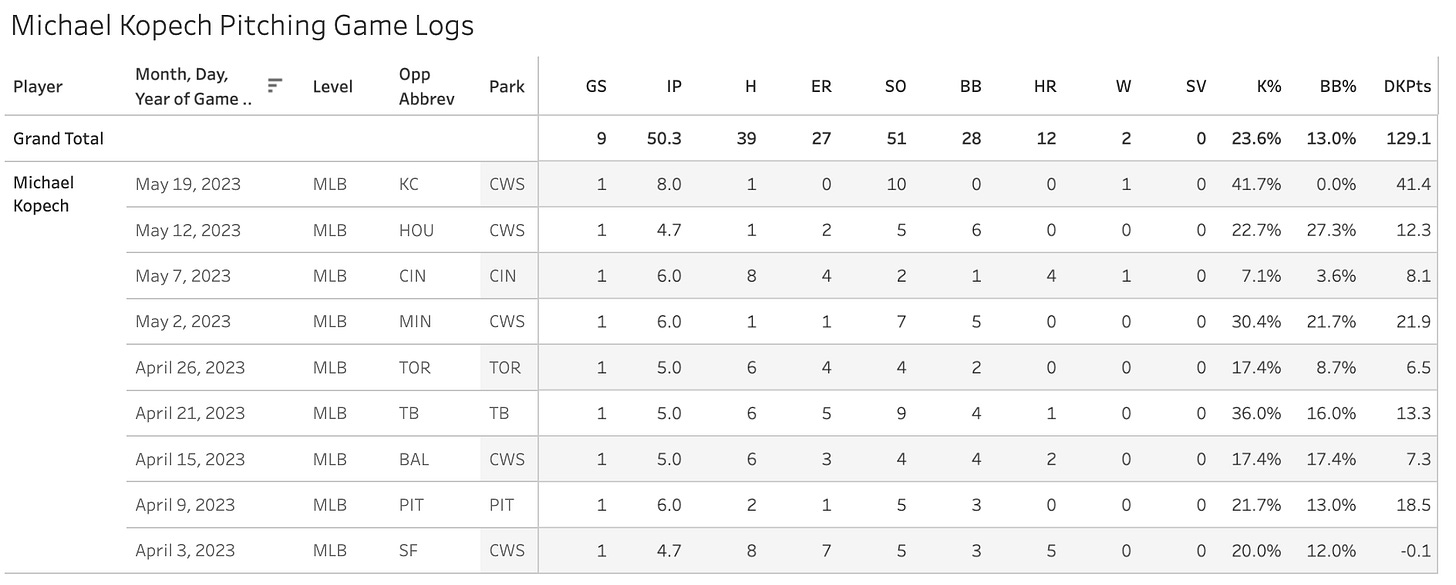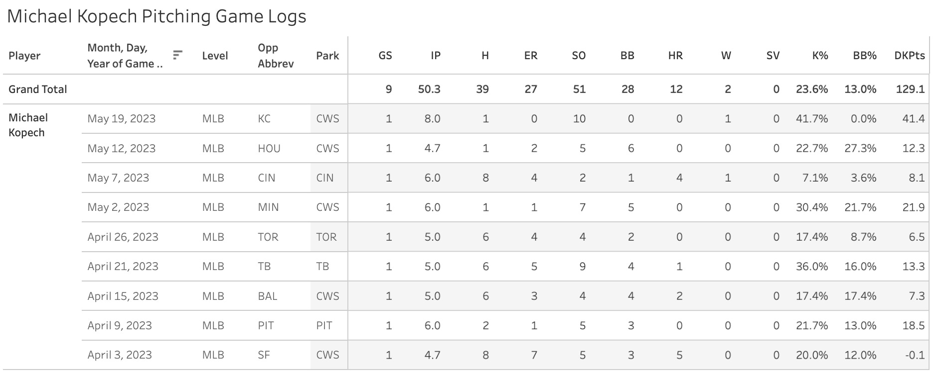 2. Michael Kopech (CWS): 20.4 SwStr%, 38.8 CSW%