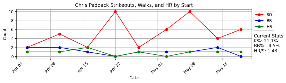 This is what can happen when you don’t give up a .450 BABIP! Paddack was excellent in that start, and he gave up two runs almost immediately - so he essentially threw 7+ consecutive shutout innings against the Guardians.
