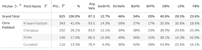 Chris Paddack - 102 TBF, 31.6% CSW%