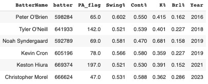 I could tell you he’s due for regression, but that would be stupid. Everybody knows that, I’m not giving you anything useful by saying that. What I’m going to show you are some other hitters through the Statcast era that have shown profiles similar to Morel’s.