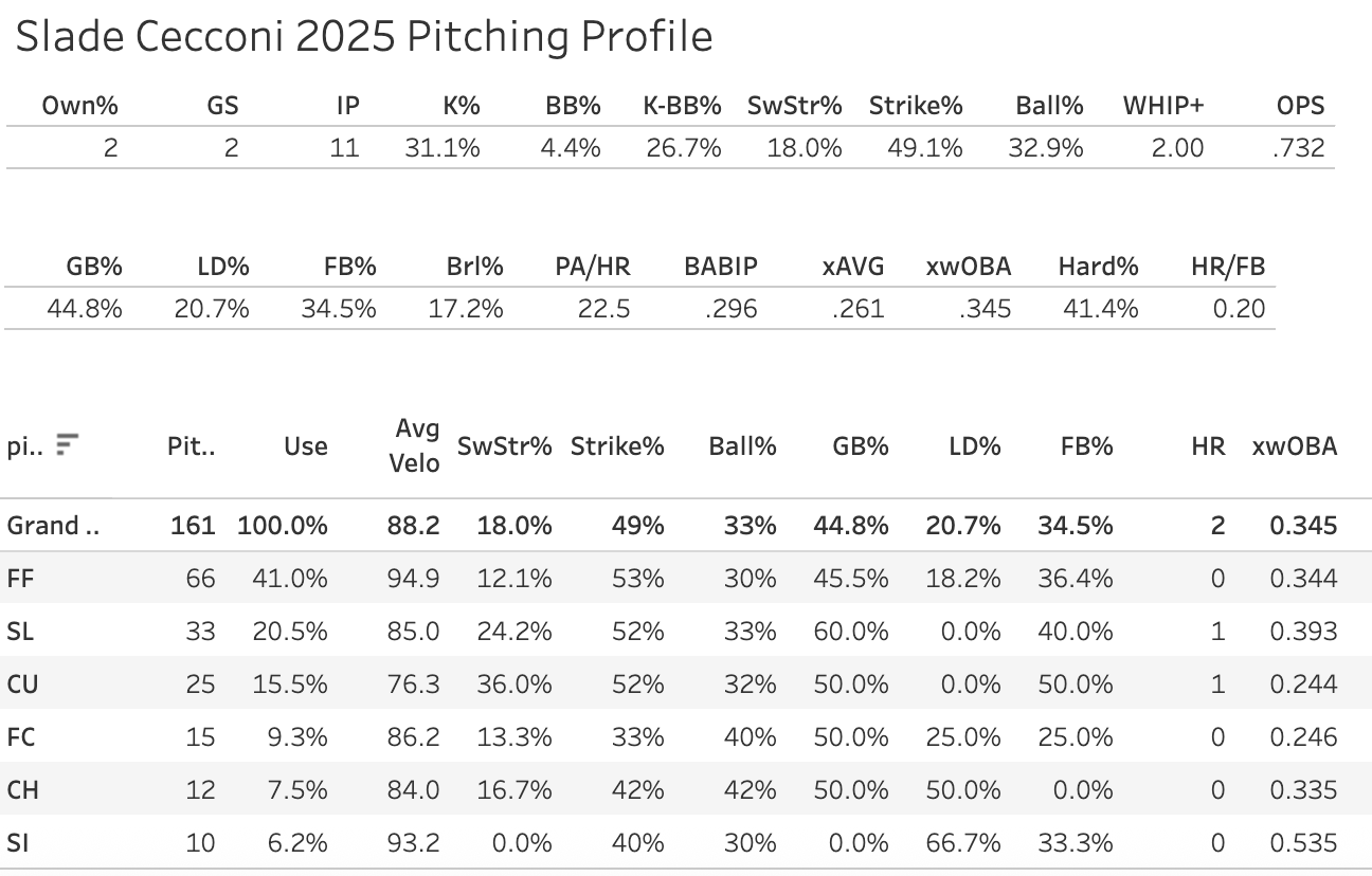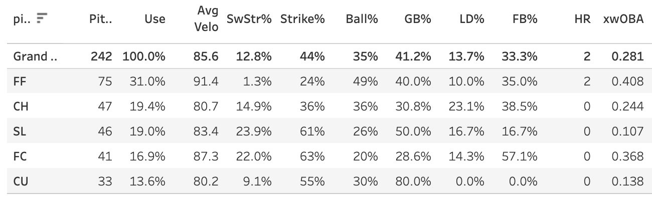 He does have a decent 12.8% SwStr% and a 34.7% Ball%. So that’s a positive sign.