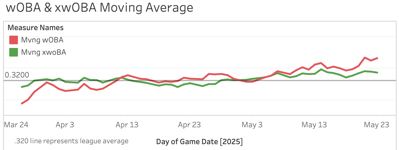 Nick Kurtz hit his fourth homer of the week. He’s now up to a .440 SLG and a .730 OPS for the year - pretty respectable marks. Since May 13th: