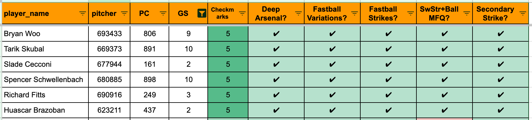 Good Strike%, but nothing else. He lost his “SwStr% + MFQ” checkmark. Sad. But I won’t stop talking about Ryan Gusto. Not yet.