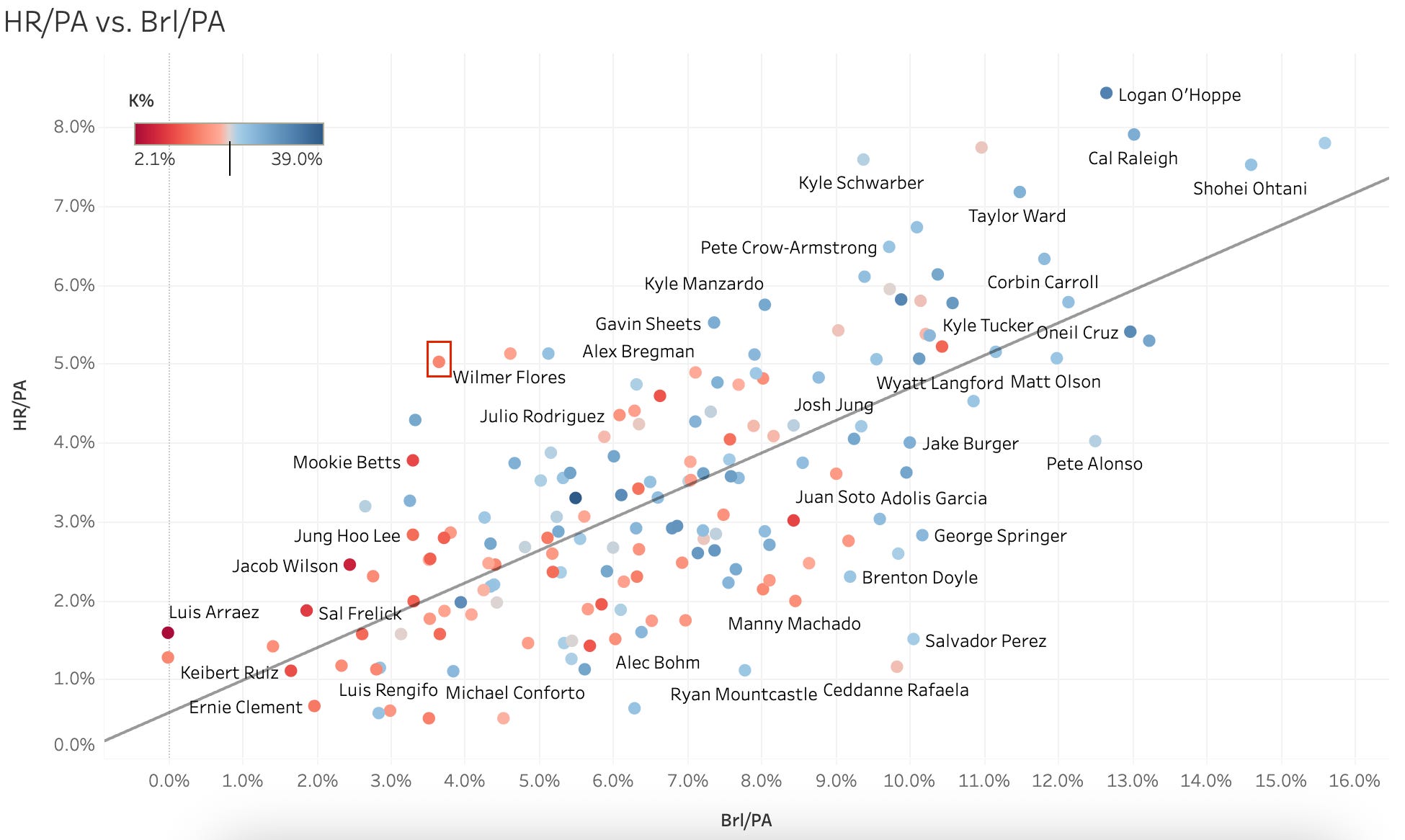 Here’s where he is on the HR/PA vs. Brl/PA plot: