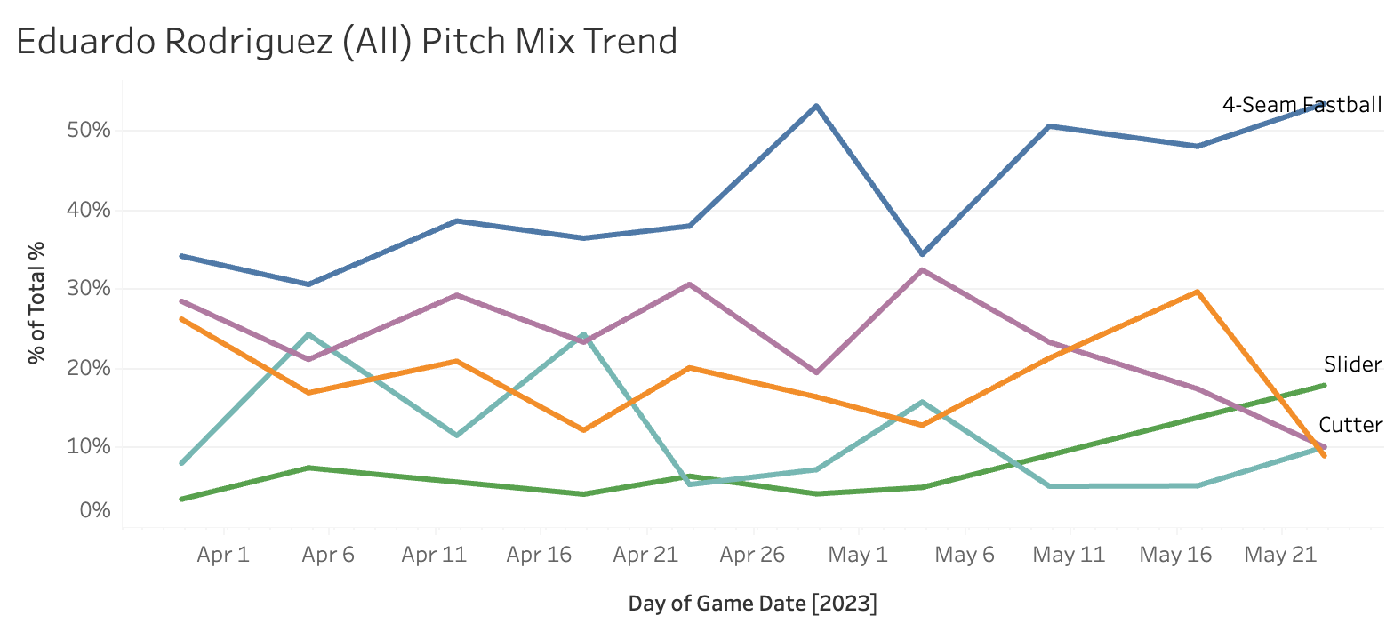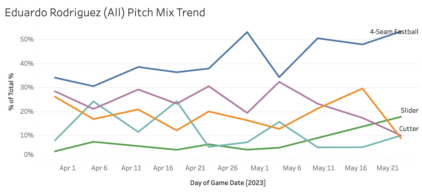 Eduardo Rodriguez...(DET)...90 Pitches....18.9 SwStr%...54.4 Strike%...28.9 Ball%...16.7 BIP%