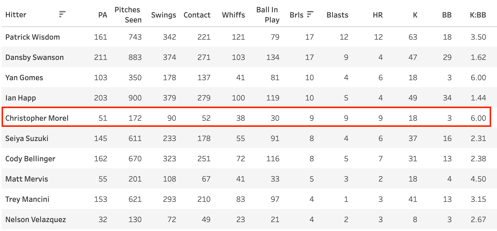 Isaac Paredes - 62 PA, 109 Swings, 87.2 Cont%