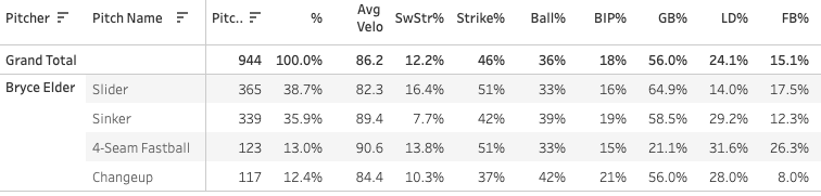 13. Bryce Elder (ATL): 47.5 Strike%, 34.7 Ball%