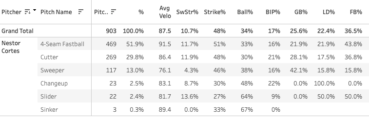 3. Nestor Cortes (NYY): 51.7 Strike%, 29.2 Ball%