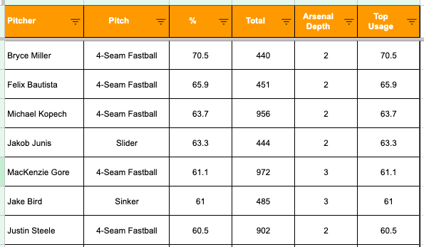 That’s the top pitch usage for any pitch of any qualified pitcher by the way my script tracks it (I’m not sure what the qualification criteria is there):