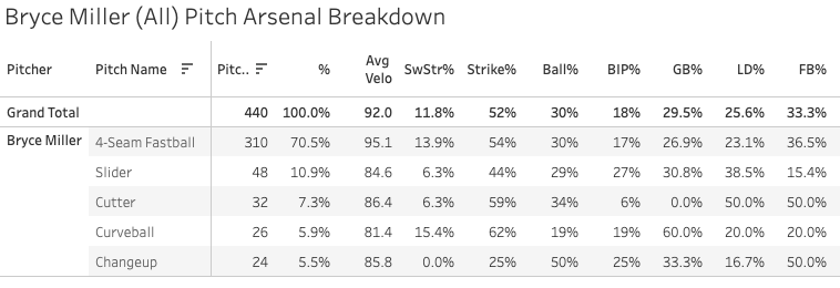 2. Bryce Miller (SEA): 52.2 Strike%, 32.2 Ball%