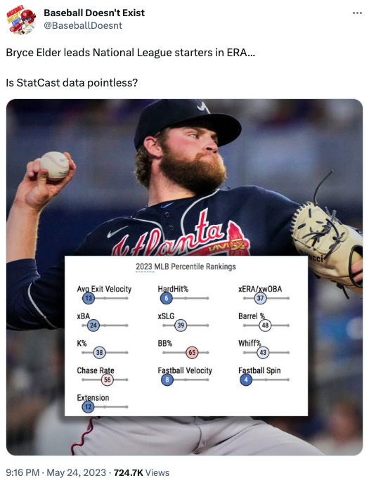But point taken, he’s massively beating the Statcast page. I don’t even really need to continue with the argument I was going to make because everybody knows and my audience here would almost all agree just by virtue of them being here and reading this far - so what’s the point?
