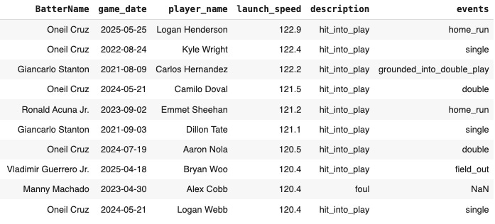 He is already in the history books as being the guy to give up the hardest ball ever hit. Here are the ten hardest hit balls dating back to 2021: