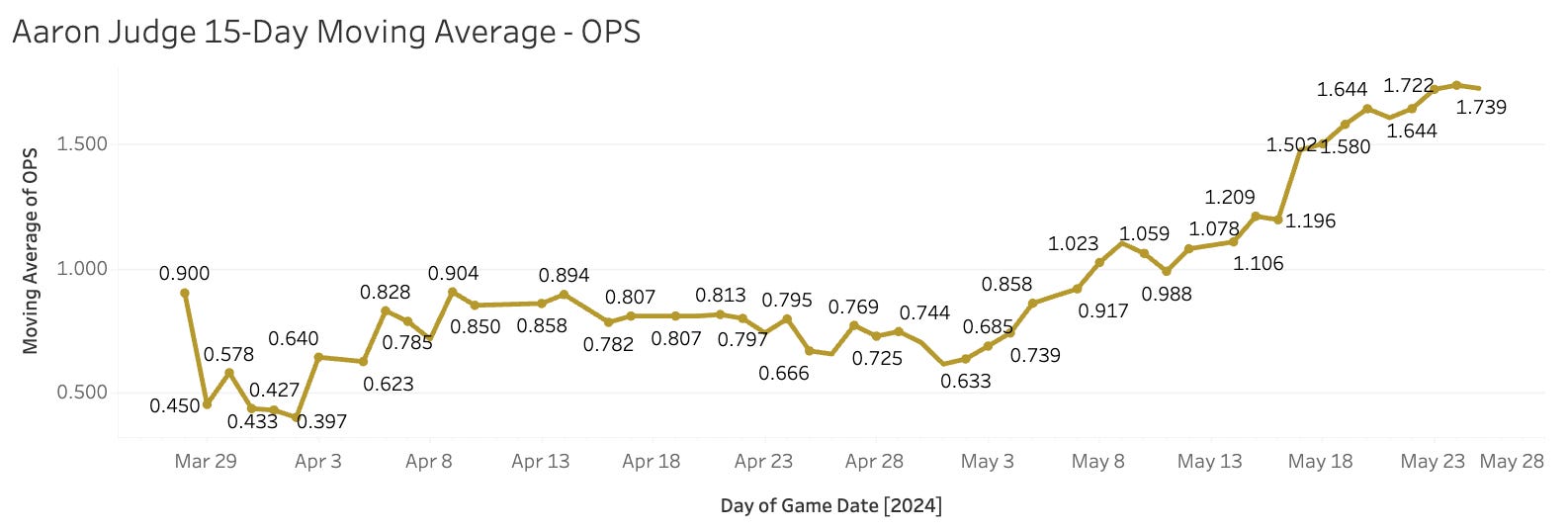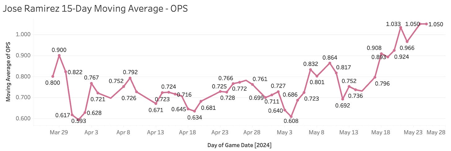 Jose Ramirez isn’t far behind with 10 May homers and a 1.007 OPS (okay that actually is pretty far behind Judge in SLG and OBP, but it’s still very good).