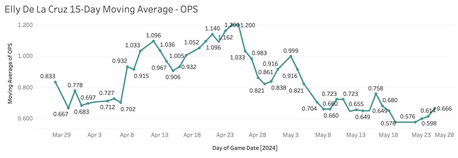Elly De La Cruz leads May in steals (13) but has homered just once this month with a .607 OPS. Whoopsie-daisy! This is what you get from the guy.