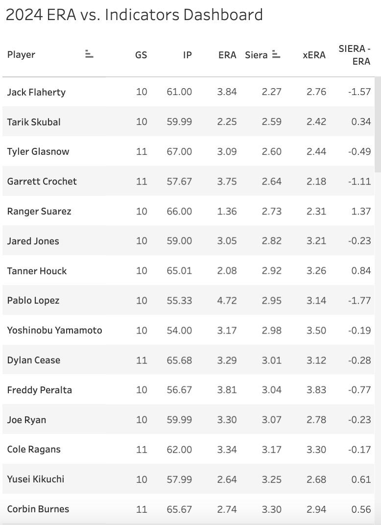 Jack Flaherty - 96 TBF, 32.3 K%, 4.2 BB%, 47.5% GB%