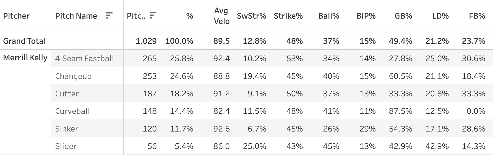 11. Merrill Kelly (ARI): 47.2 Strike%, 40.7 Ball%