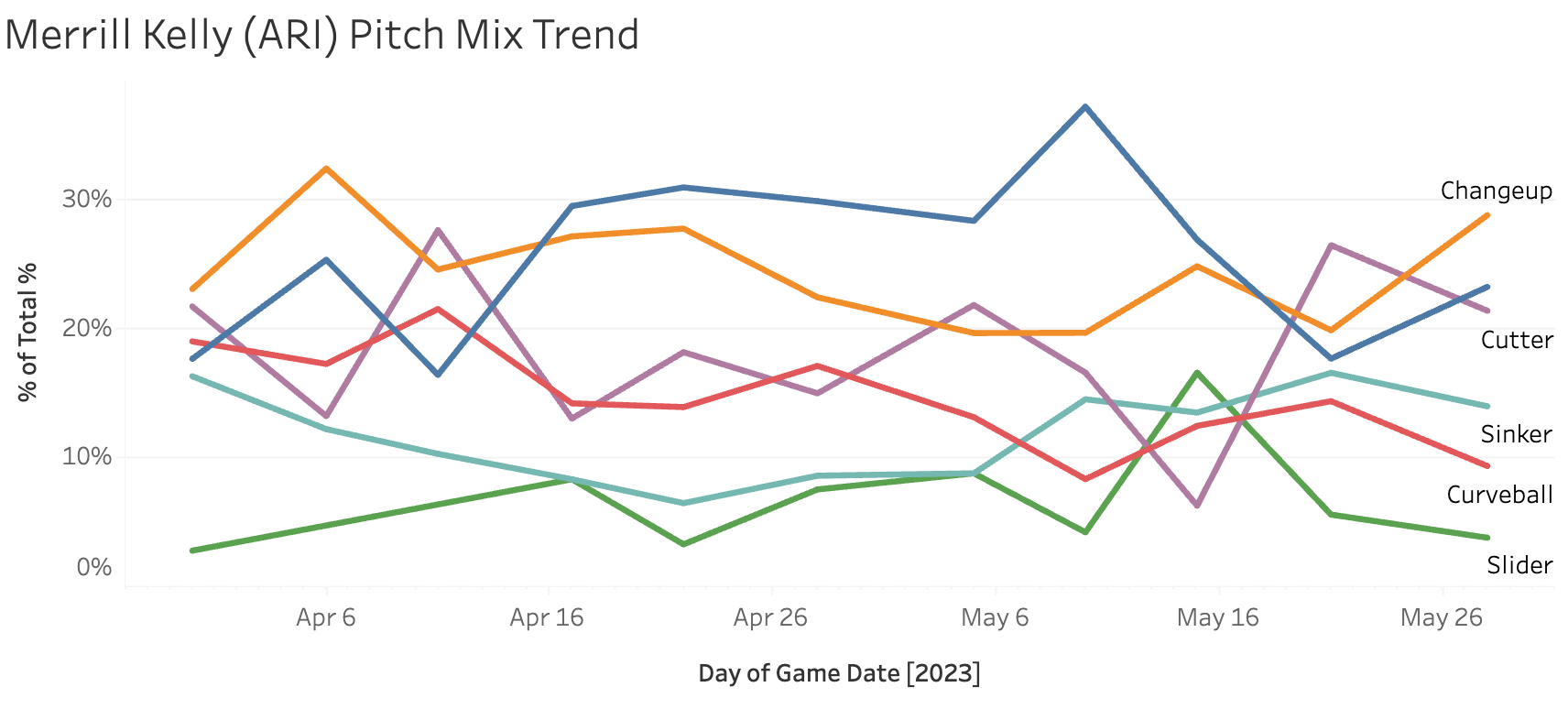 Merrill Kelly was also phenomenal yet again with ten strikeouts of his own over 6.2 innings in a win. He’s won five of his last six with a 32.5% K% and a 5.8% BB% in May.
