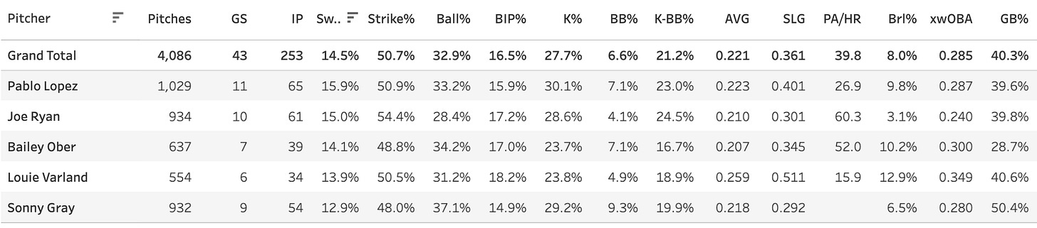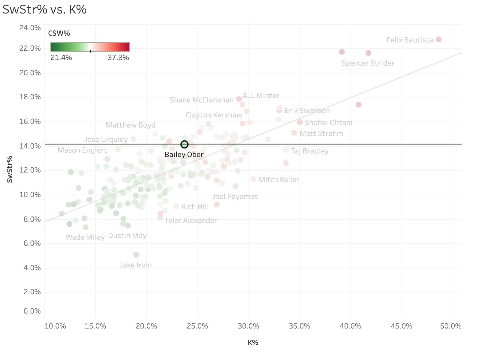 6. Bailey Ober (MIN): 52.6 Strike%, 35.8 Ball%