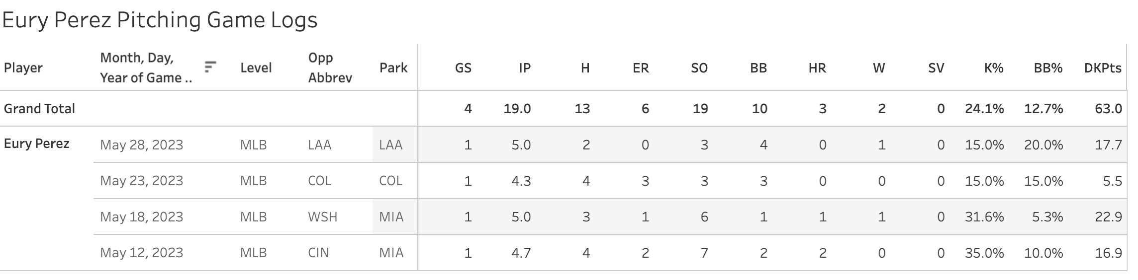 I don’t really think this dude is anywhere near a 30% K% pitcher - and we should expect some downward regression moving forward, but even if that happens he’s still a more than solid fantasy option in this environment.