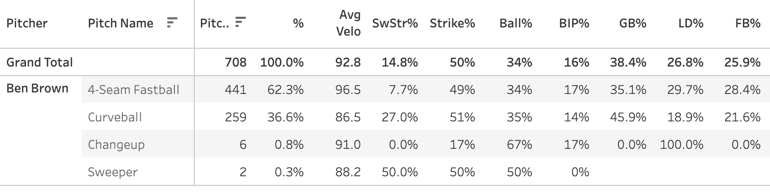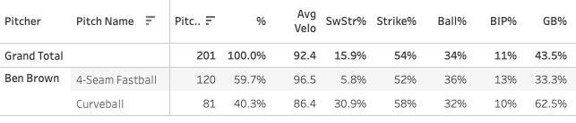 Ben Brown - 70 TBF, 37.8% CSW%