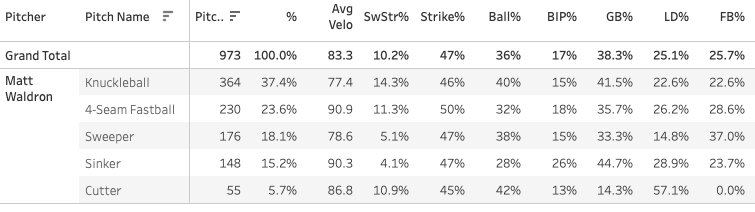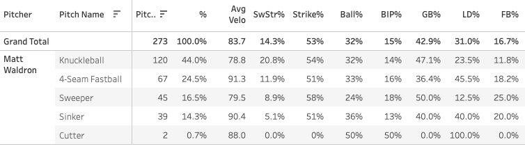 Matt Waldron - 92 TBF, 27.2% K-BB%