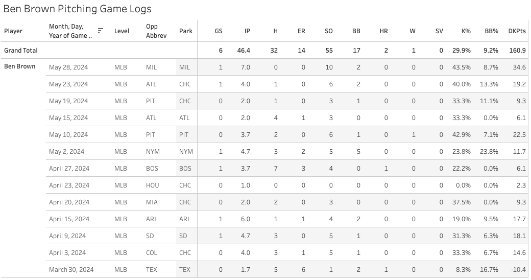 We have to talk about Ben Brown today. He dominated the Brewers yesterday: