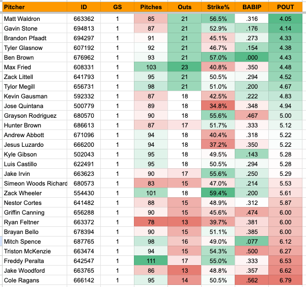1. Matt Waldron: 85 Pitches, 21 Outs, 4.05 POUT