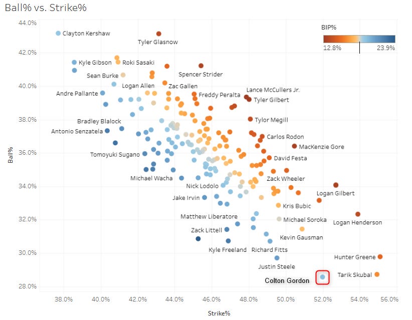 3. MacKenzie Gore (WSH): 49.5 Strike%, 36.8 Ball%