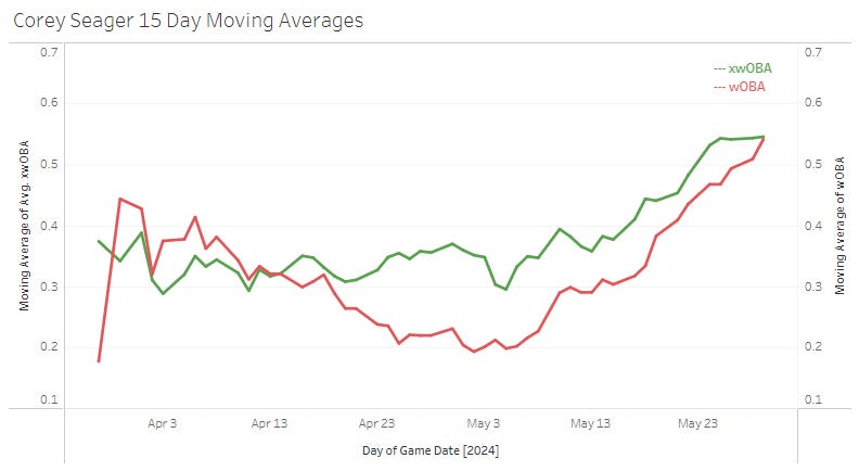 This is a beautiful example of where the xwOBA signals to you that things are turning around:
