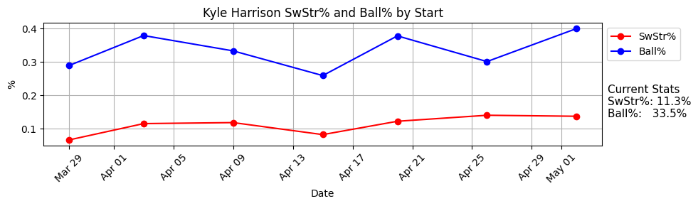 3. Kyle Harrison (SF): 50.5 Strike%, 40.0 Ball%