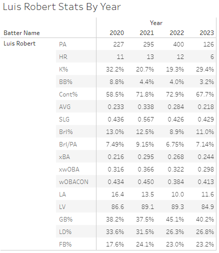 Luis Robert - 39.1% Whiff%, 68.0% Weak%, 0.897 Cold Rating