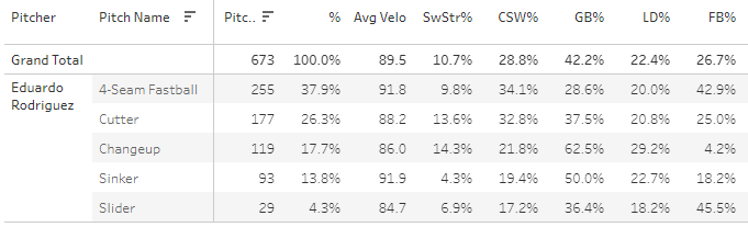 2. Eduardo Rodriguez (DET): 12.7 SwStr%, 35.3 CSW%