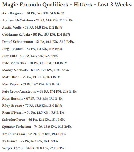 I might have to redefine what a “Magic Formula Qualifier” is, because there have been a ton of them most days in the notes: