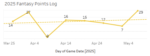 The Strike% went crazy at 59.3%, but it was mostly foul balls and called strikes, as shown by the 12.1% SwStr%. The numbers are still bad for the year with an 11.5% K-BB%, a 46.4% Strike%, and a 36.4% Ball%. But it was good to see some life for Kikuchi. I do think you can let him go in 10 or 12-teamers, but I wouldn’t be giving up on him entirely. I could see Kikuchi getting it together and having a pretty good stretch of starts. Don’t forget about how his 2024 season went.