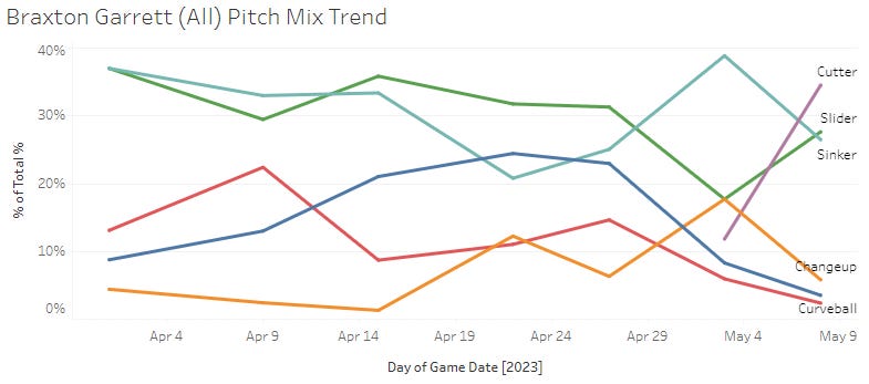 6. Braxton Garrett (MIA): 13.8 SwStr%, 31.0 CSW%