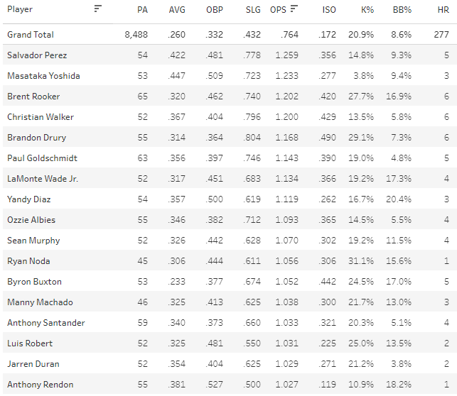 Alejandro Kirk - 52 PA, 84 Swings, 90.5 Cont%