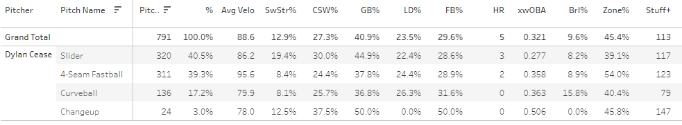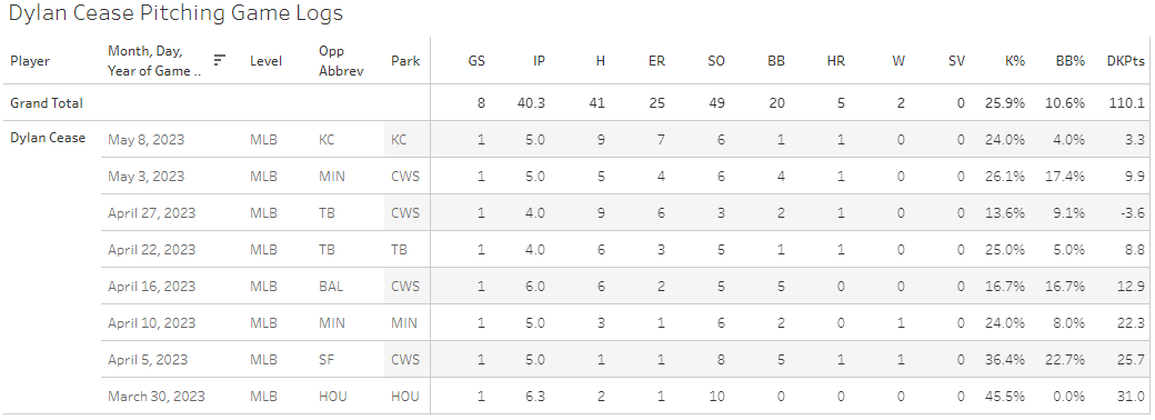 Dylan Cease is struggling. He started the year well, giving up just five earned runs in his first 24 innings. But his last four starts have been bad with 20 earned runs in 18 innings.